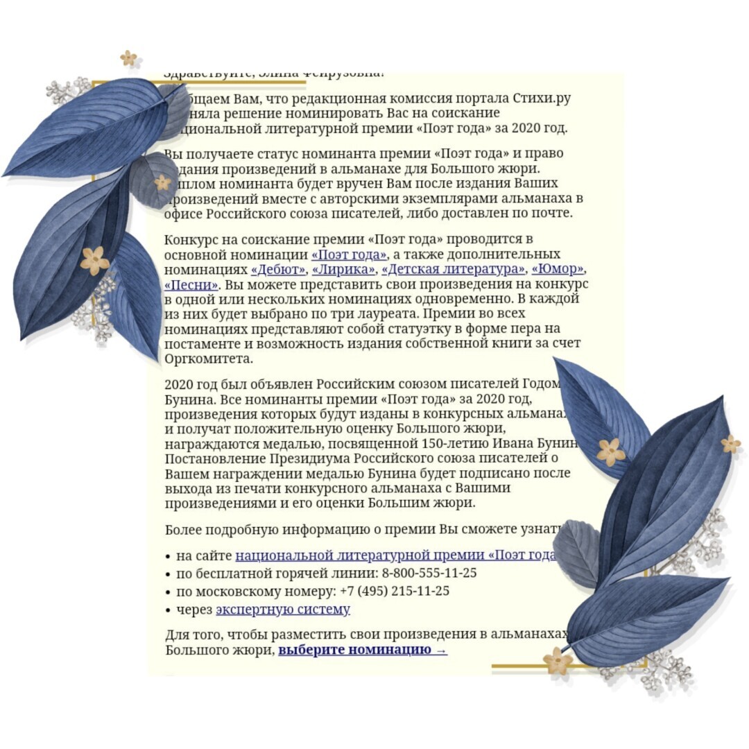 И не так давно мне выпал шанс, поучаствовать в номинации "Поэт года" и благодаря этому, попасть на страницы книг, нашего культурного наследия страны. И все бы хорошо, если бы не некоторые ньюансы. Участие платное, но платить будут не мне, а я им. Поэты и так не жили богато в наших "краях", но славу свою не покупали, а получили по факту своего таланта, пусть многие и после смерти. Но покупать славу, известность и признание!!!! Нет. Это не моё. А ваше мнение, стоит это того или нет? Нужно ли платить за своё творчество или творчество должно приносить доход и удовольствие?