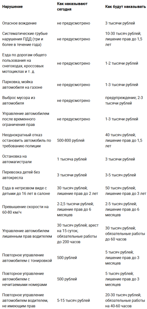 Новые штрафы для водителей в доработанном КоАП (полный список)