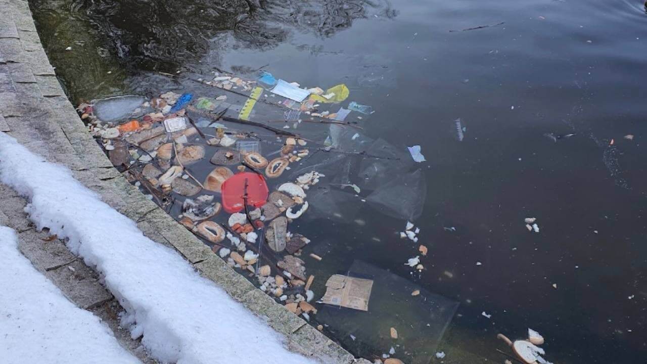 Озеро в Центральном парке Воронежа завалили мусором и хлебобулочными изделиями