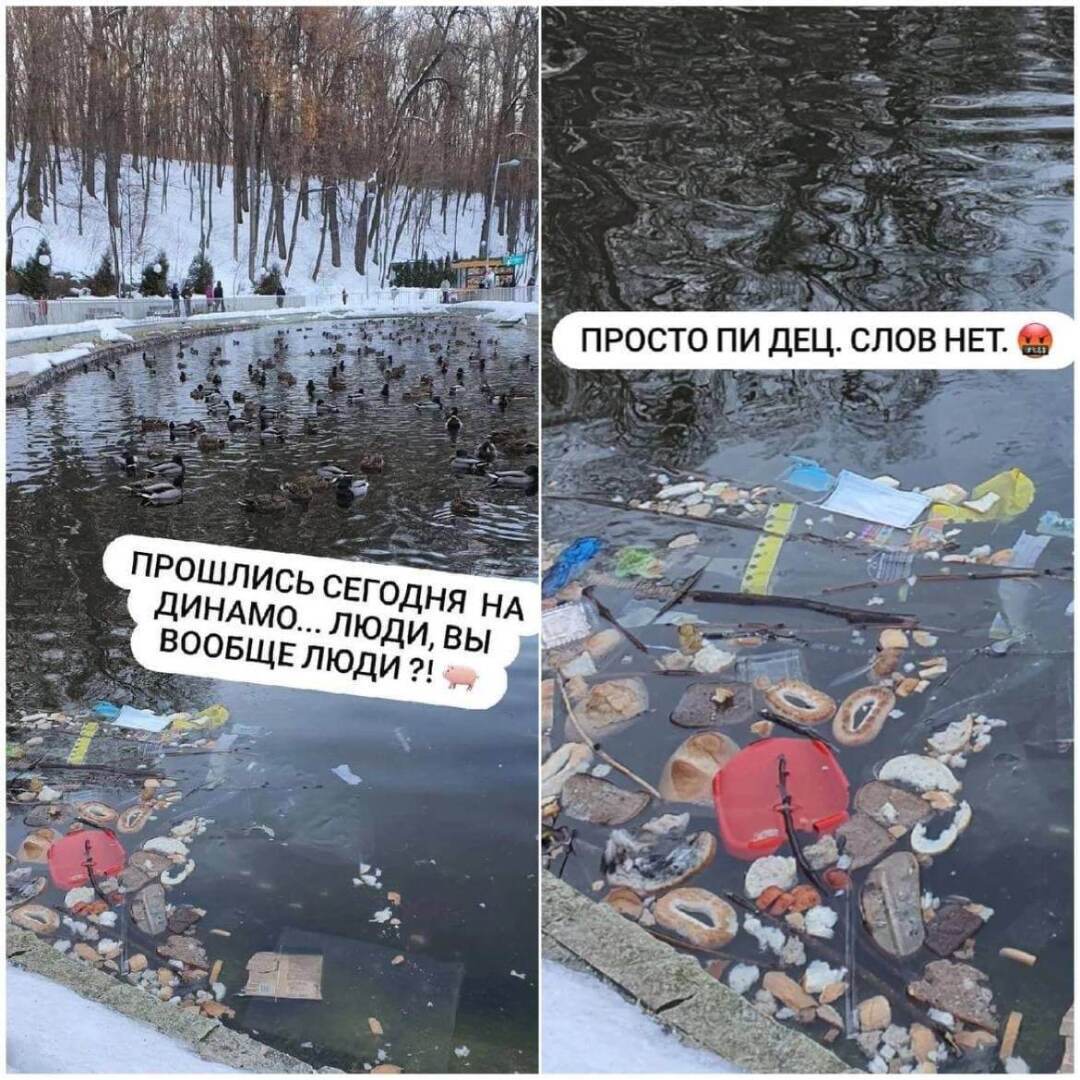 Если плавающие баранки, крендели и куски хлеба еще можно объяснить – там много уток, то вот остальное вызывает недоумение.