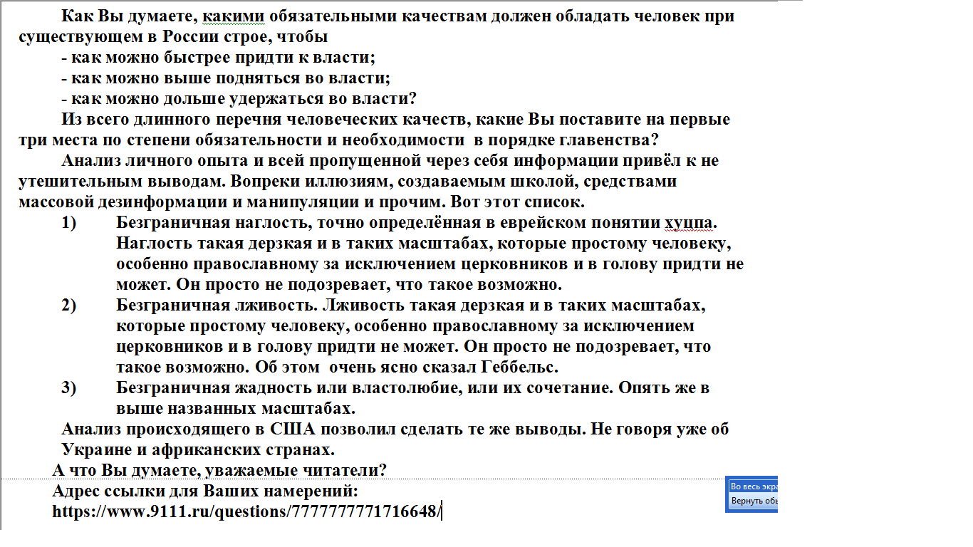 Как Вы думаете, какими обязательными качествам должен обладать человек при существующем в России строе, чтобы