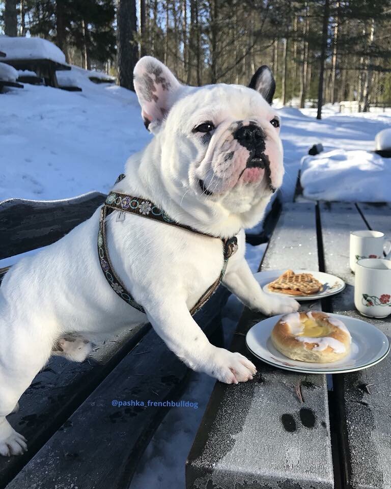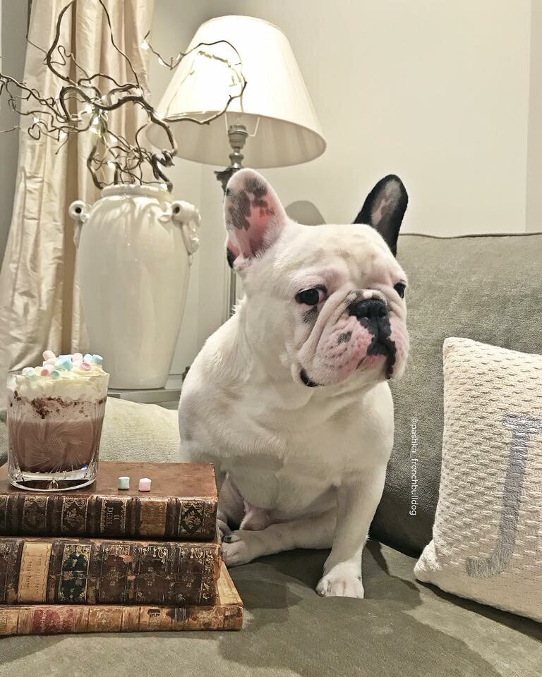 А тут, посмотрите насколько серьезен бульдог, наверняка обдумывает как лучше подойти к хозяевам, что бы вкусняшек по больше дали. Французики аллергичные собаки, но при правильном рационе у них все в порядке и можно разные лакомства.