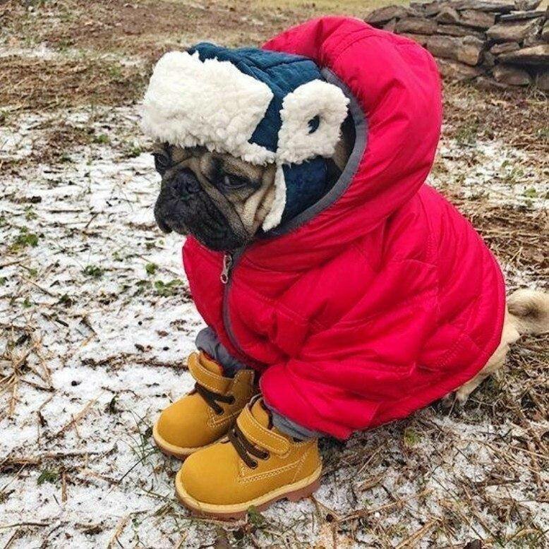 Хозяева любят наряжать своих питомцев, благо сейчас с этим нет проблем и на любой вкус и цвет. Да и стоит одевать, у французиков не так много защиты от холода.