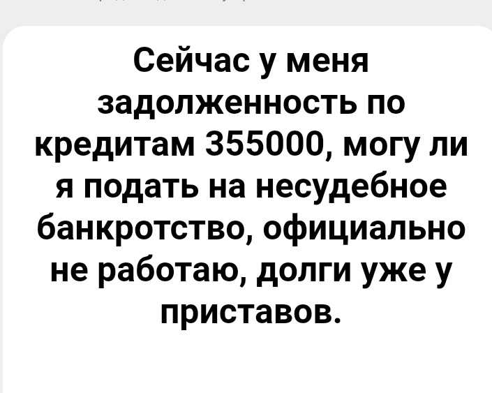 Внесудебное банкротство граждан возможно если хотя бы одно исполнительное производство окончено в связи с невозможностью взыскания и не имеется открытых исполнительных производств. При этом у Вас не должно быть официальных доходов свыше одного прожиточного минимума (на который с 1 февраля 2022 года пристава не могут накладывать взыскание) и у Вас не должно быть имущества подлежащего взысканию. Обратите внимание, что пристав вправе прийти к Вам домой и описать (арестовать) б-у второй телевизор, второй холодильник, второй диван итп - поэтому домашнее имущество по письменному договору возьмите в безвозмездное пользование у своих друзей родни итп (т.е. составьте договор с описью что имущество домашнее не Ваше). Естественно у Вас не должно быть второго жилья машины дачи итд. Если нет дохода и нет имущества и с момента возбуждения исполнительного производства прошло свыше 3 месяцев - пишите приставу заявление об окончании исполнительного производства и укажите в нем что доходов нет (кормят Вас родственники) имущества нет (пользуетесь имуществом родни). Если пристав откажет - жалуйтесь в суд что пристав необоснованно затягивает исполнительное производство.
