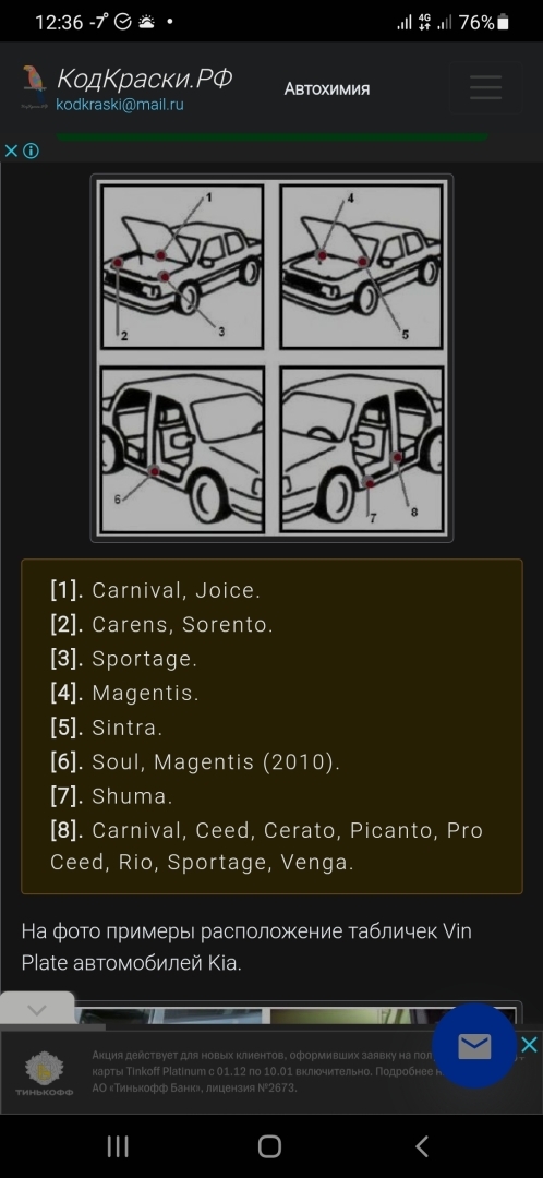 Представляю места где обозначены коды для заказа краски на авто киа соренто.