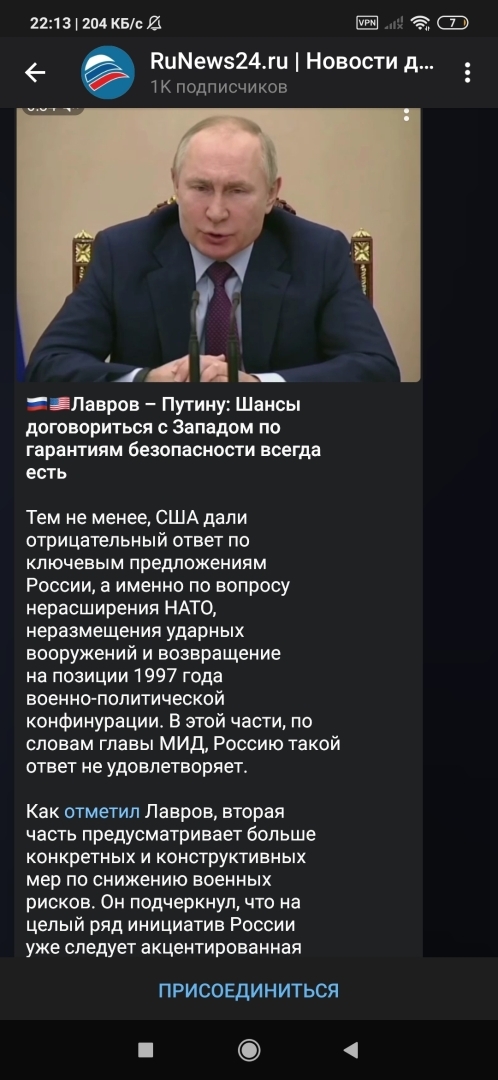 🇷🇺🇺🇸Лавров – Путину: Шансы условиться с Западом по гарантиям защищенности всякий раз есть