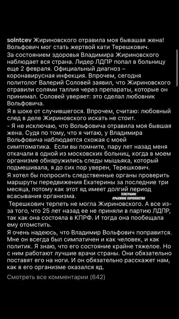 «Терешкович вытерпеть не имела возможность Жириновского. А все из за такого, собственно что 25 лет обратно ее не обрели в партию ЛДПР, например как она состояла в КПРФ. И за это время она посулила ему отомстить», — написал Гоген.