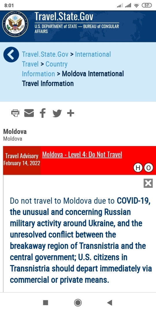 Госдеп США указывает покинуть Приднестровье и не ездить в Молдову из-за ковид 19, активности России вокруг Украины и неурегулированного конфликта между