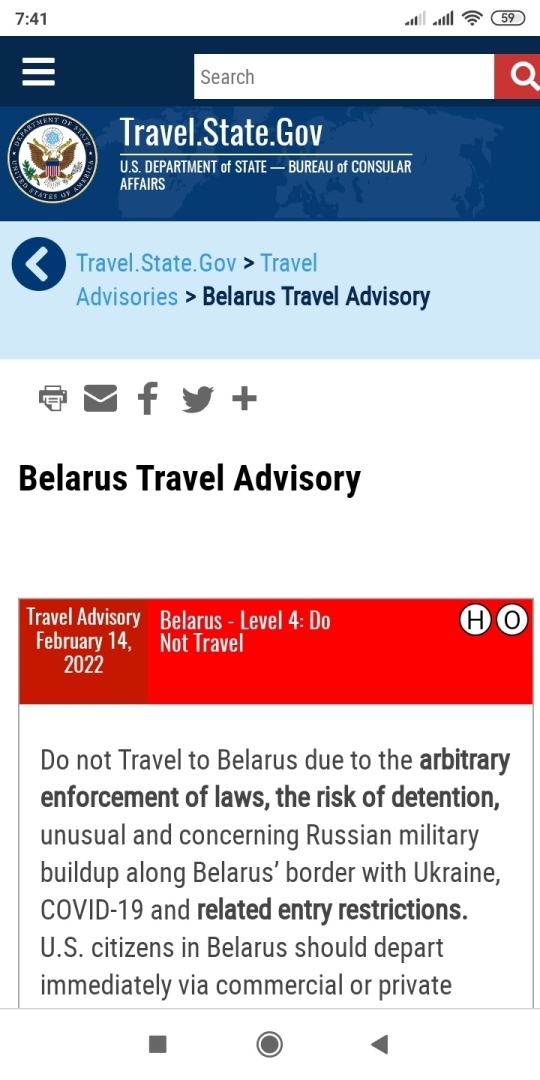 После Украины Госдеп в разделе Бюро консульских дел разместил информацию об опасности нахождения в Республике Беларусь →