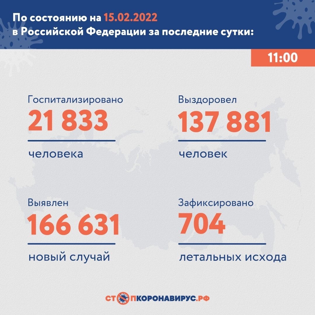 Данные о заболевших коронавирусом в России на 15.02.2022
