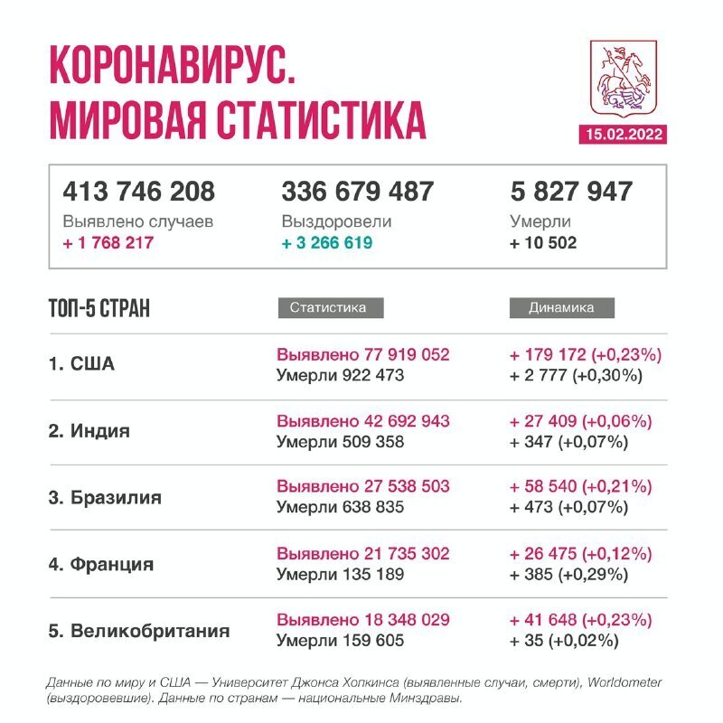 ВОЗ призывает страны Восточной Европы сохранить антиковидные меры. За последние две недели число случаев коронавируса в регионе выросло вдвое. Также в ВОЗ отметили, что менее 40% лиц старше 60 лет в Боснии и Герцеговине, Болгарии, Киргизии, Узбекистане и Украине прошли полный курс вакцинации против COVID-19. 🔺Власти Буэнос-Айреса запустили систему диагностики ковида по аудиозаписи кашля. Система разработана при помощи искусственного интеллекта. Желающие проверить свой кашель должны написать официальному боту правительства Буэнос-Айреса в WhatsApp. По словам властей, на данный момент точность составляет порядка 86%. 🔺На Островах Кука выявили первый случай заражения коронавирусом. Инфицированный гражданин прибыл 10 февраля из Новой Зеландии. Правительство воздержалось от жестких санитарных ограничений, однако выполнение пассажирских авиарейсов на территорию островного государства приостановлено на семь дней до 22 февраля.