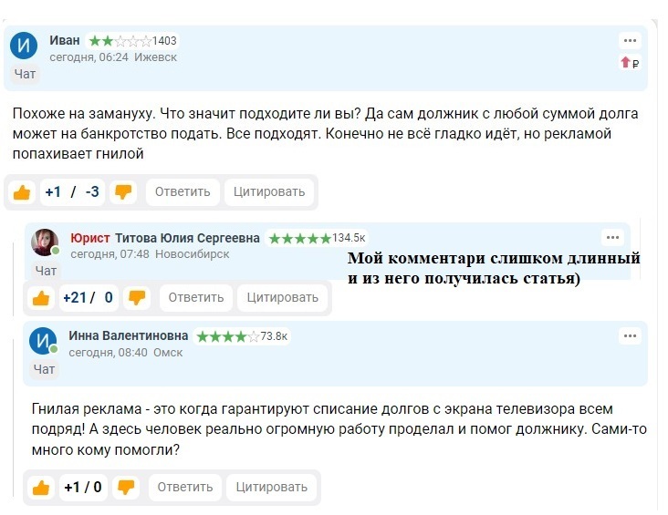 Так как я рассказываю о своей практике, то можно сделать вывод, что я работаю в сфере банкротства и, соответственно, ко мне можно обратиться с этим вопросом, о чем я указала в конце статьи: