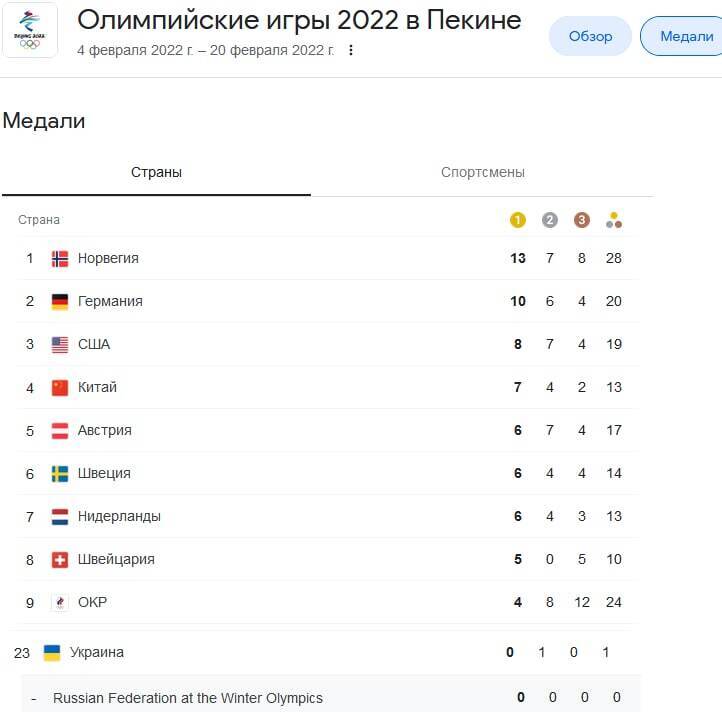 Что периодом Гугл в таблице с медалями демонстрирует 2 сборные РФ для россиян — 1 деятельную ОКР и для чего-то порознь сборную РФ, у которой по небольшие обстоятельствам 0 медалей.