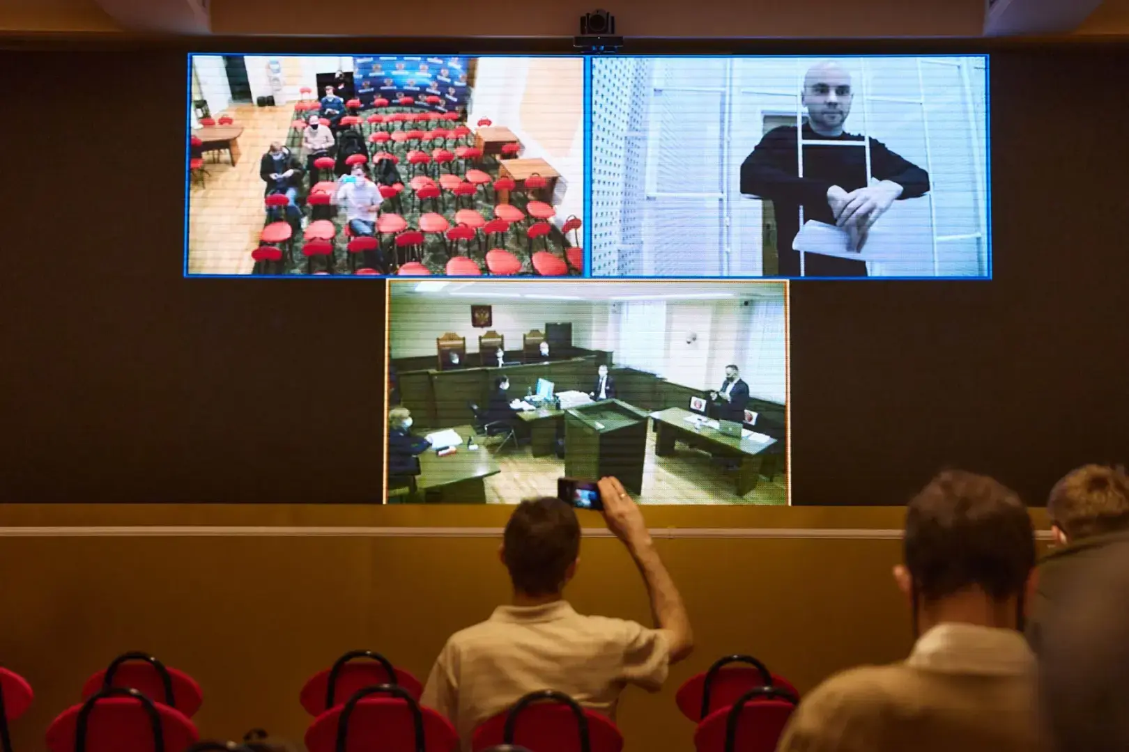 Андрей Пивоваров выступает по видеосвязи в Верховном суде РФ. Москва, 16 февраля 2022 года. Андрей Золотов / Вот Так