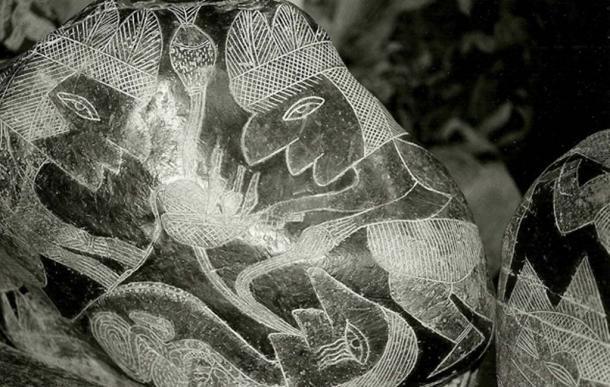 Это были камни из серого андезита, гладкие и с нанесенной гравировкой. Андезит чрезвычайно твердая порода и возможно именно это свойство сохранило камни до наших дней. Но в то же время андезит слишком твердый материал для любого художника.