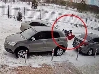 И вообще, надо посмотреть, вдруг коляска поцарапала машину.