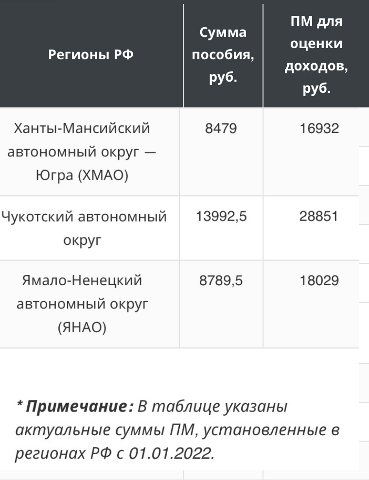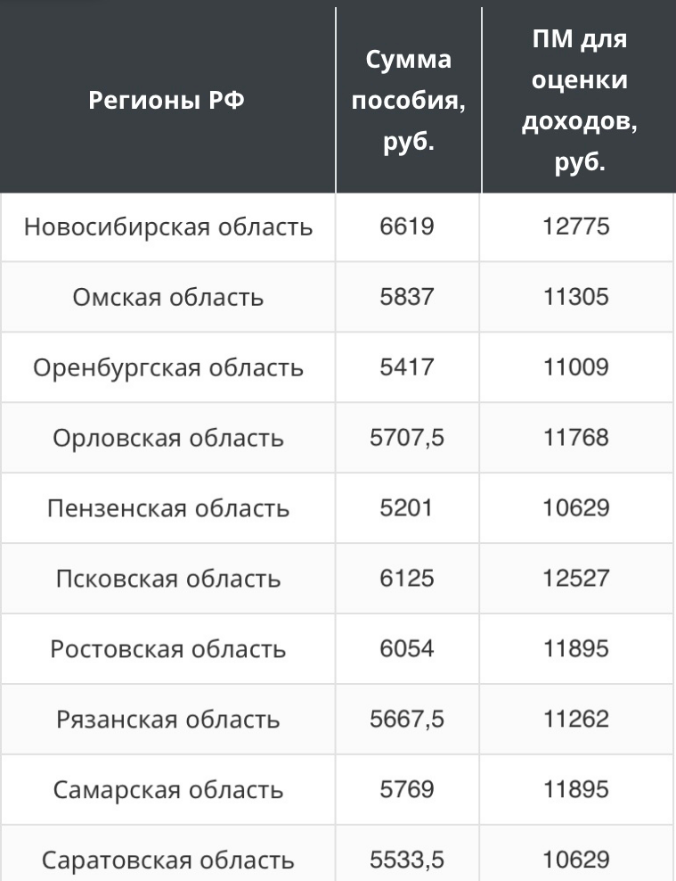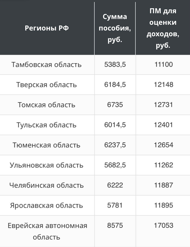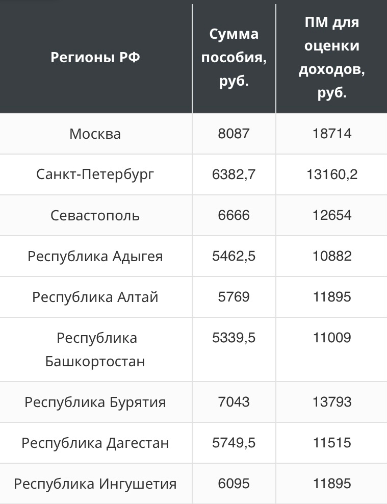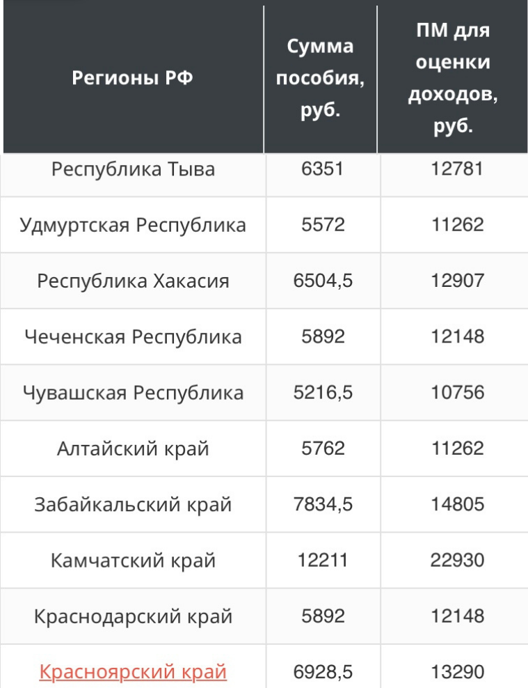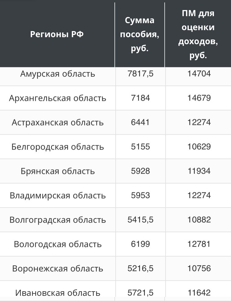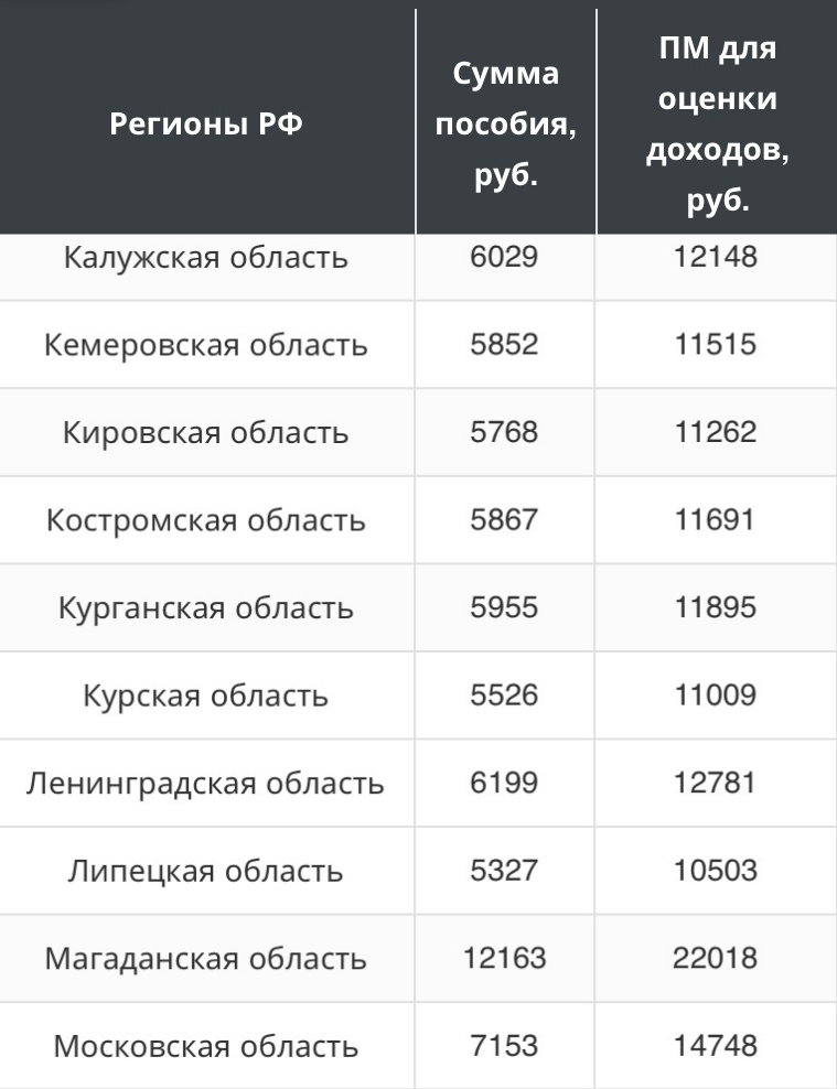 Размер пособия на детей от 8 до 17 лет в 2022 году. Таблица по регионам