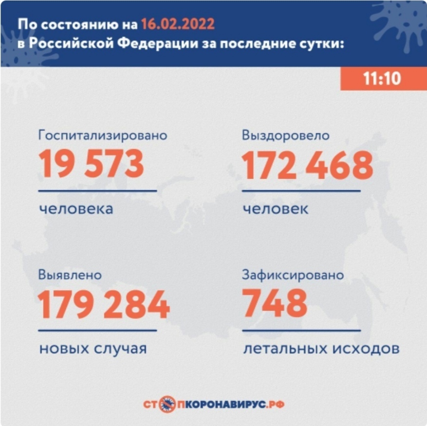За прошедший денек в РФ госпитализировали 19 573 человека. Оздоровели 172 468 больных, погибли — 748.
