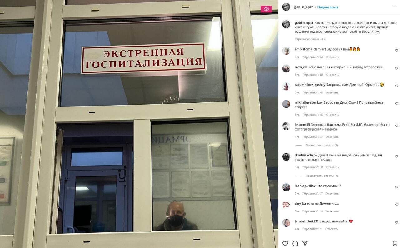 Гоблин сказал в своем инстаграме, что не выздоровел и не выздоровел в течение двух недель, поэтому он «грамотно обосновался» в больнице.