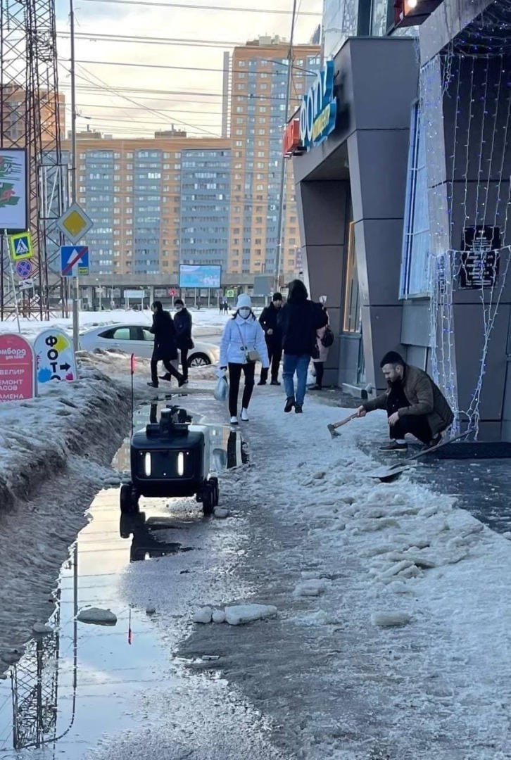 Русь киберпанковая. Яндекс ровер и мужик который отбивает лед топором