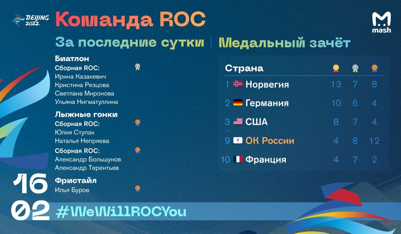Сперва биатлонистки приехали на серебро в эстафете, потом в командных спринтах свои бронзовые награды забрали девушки, а потом и парни. И под конец в лыжной акробатике отличился Илья Буров.