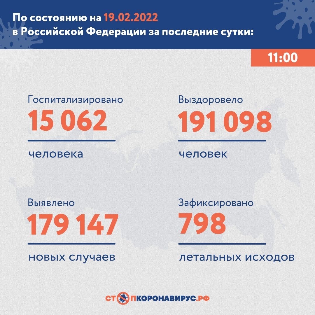 Данные о заболевших коронавирусом в России на 19.02.2022