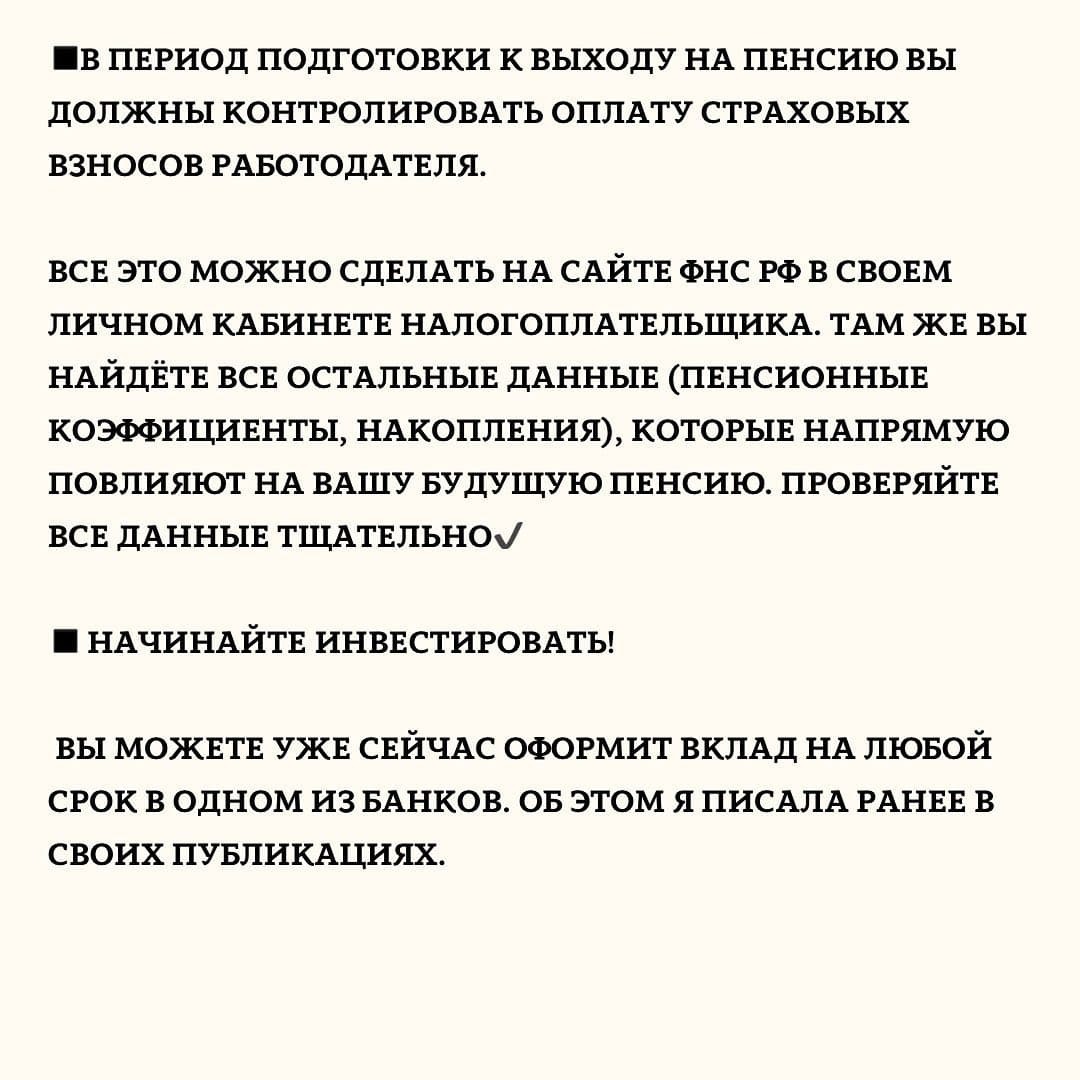 ◼️В целом, подготовка к пенсии должна начинаться с определенной стратегии, которую каждый сам себе выбирает☝🏻Именно эта стратегия будет хорошо работать для формирования пенсионных выплат в вашем ближайшем будущем.