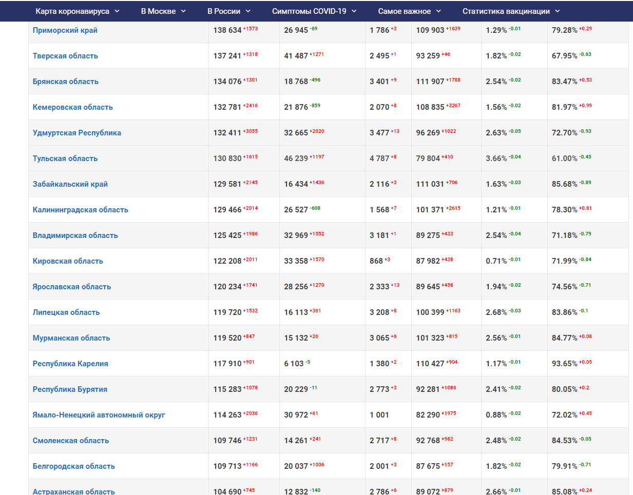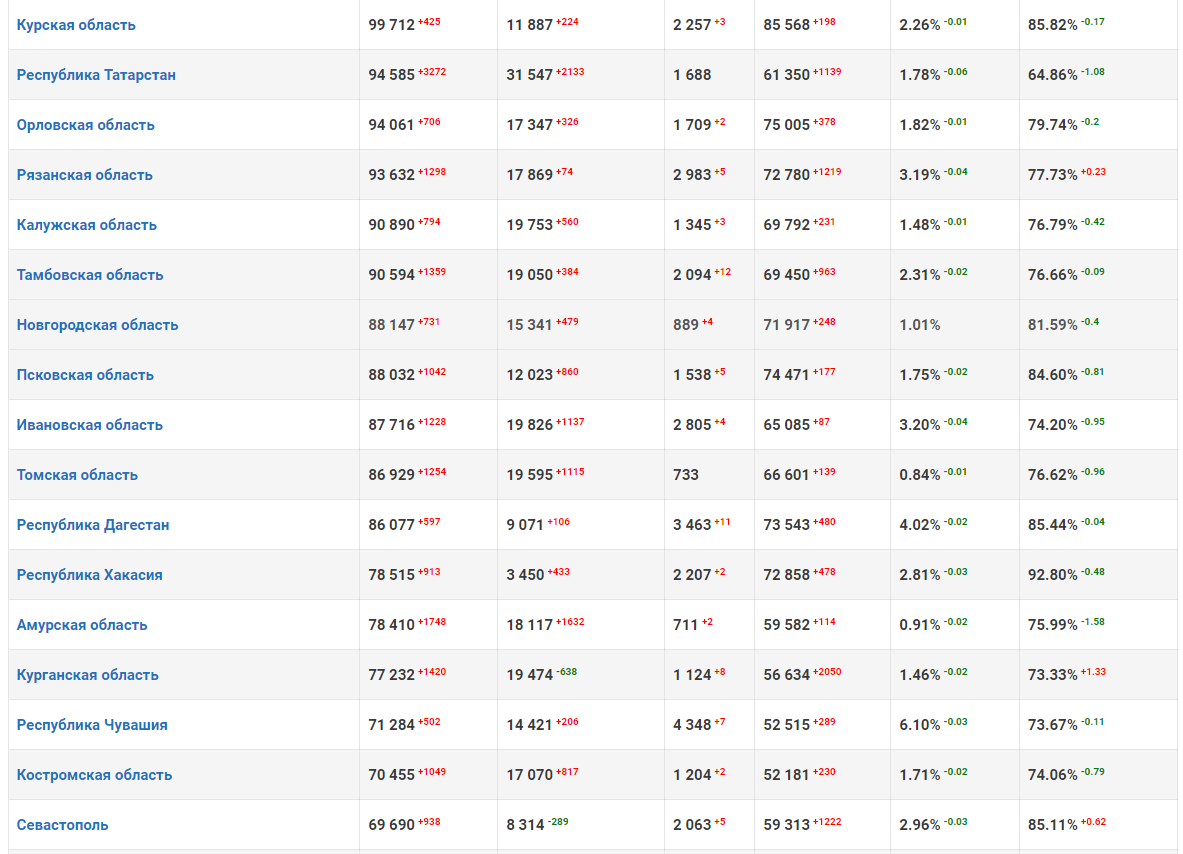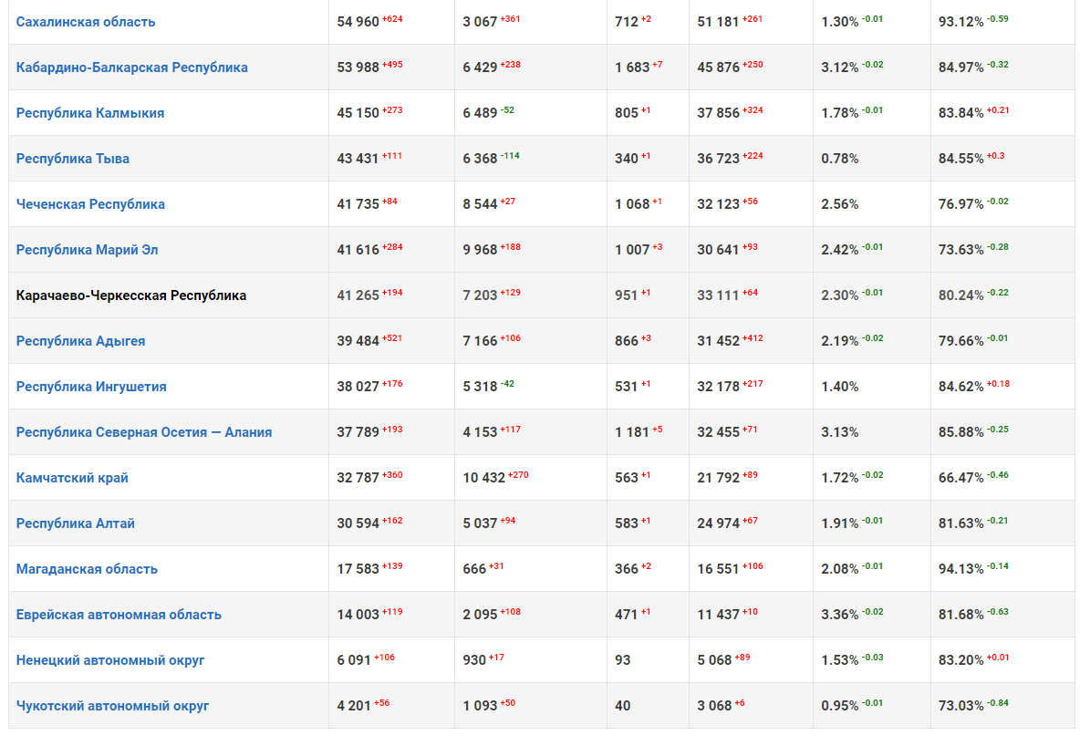 Статистика коронавируса по регионам России на 20 февраля 2022