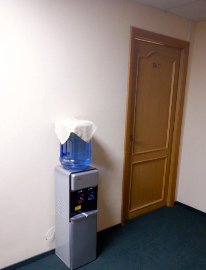В длинном гостиничном коридоре есть кулер с питьевой водой - горячей и холодной. Есть бесплатный, работающий на всей территории Wi-Fi, пароль указан на "Карте посетителя", которую выдали с ключом от номера.