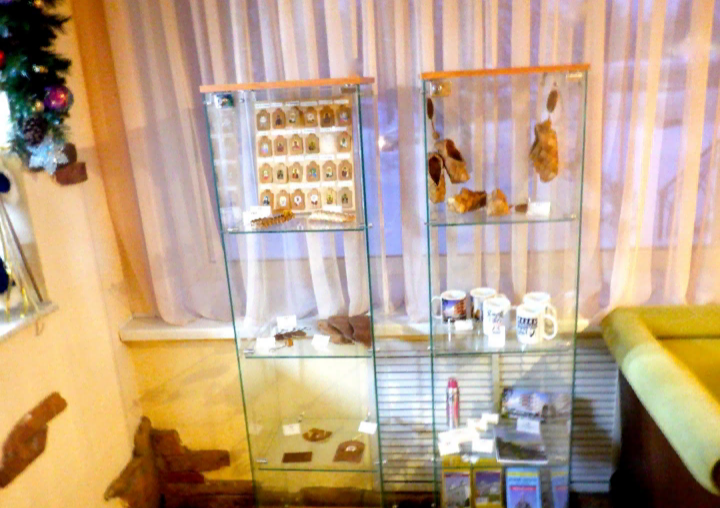 Стены помещения украшены картинами с видами дореволюционной Старой Руссы, с которыми было любопытно ознакомиться. В холле имеется стойка, где можно выпить чай или кофе.
