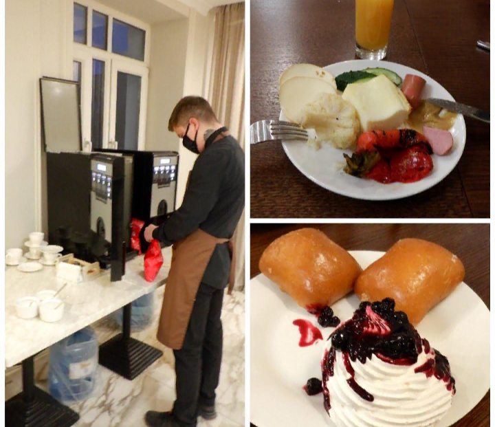 Порадовало, что был кофе из кофемашины, нормальный вполне. Официант любезно помогал готовить его всем желающим. Позавтракали обильно и вкусно - предстоял длинный экскурсионный день и возвращение в Санкт-Петербург.