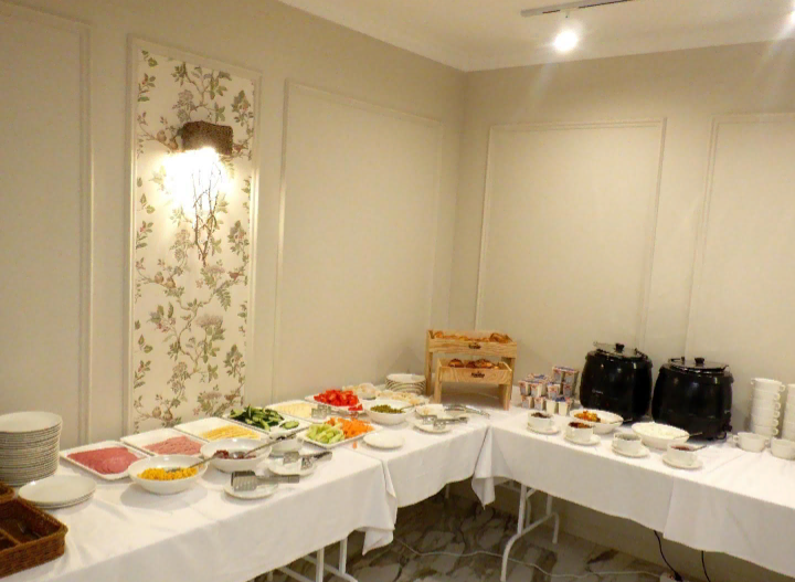 Завтрак был, как в приличном 3-звёздном отеле. Всё свежее, официанты постоянно пополняли подносы с овощами и нарезками. Из напитков предлагались соки - мультивитаминный и яблочный, молоко и кефир