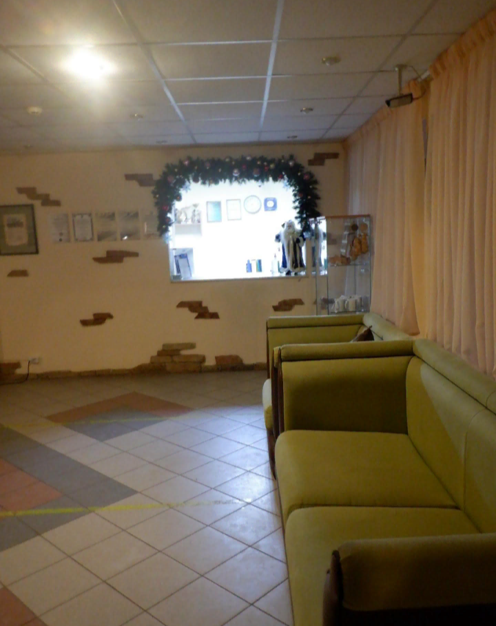 Здесь, в просторном холле, для посетителей предусмотрены мягкие диваны, где можно присесть.