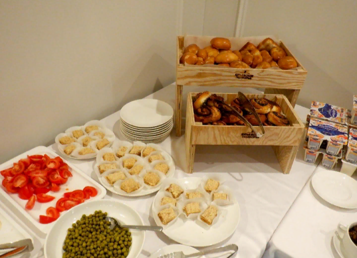 Здесь был шведский стол, что всех порадовало!)