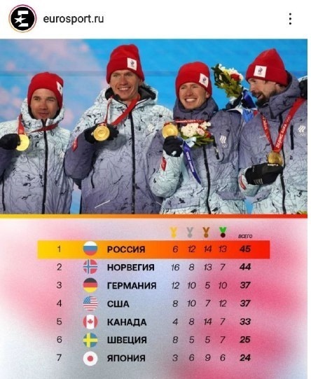 К слову, сборная России часто оставалась на 4 месте. "Деревянных" медалей набралось аж 13 штук. Евроспорт решил добавить и их в медальный зачёт. Это помогло выйти на 1 место России в альтернативном зачёте.