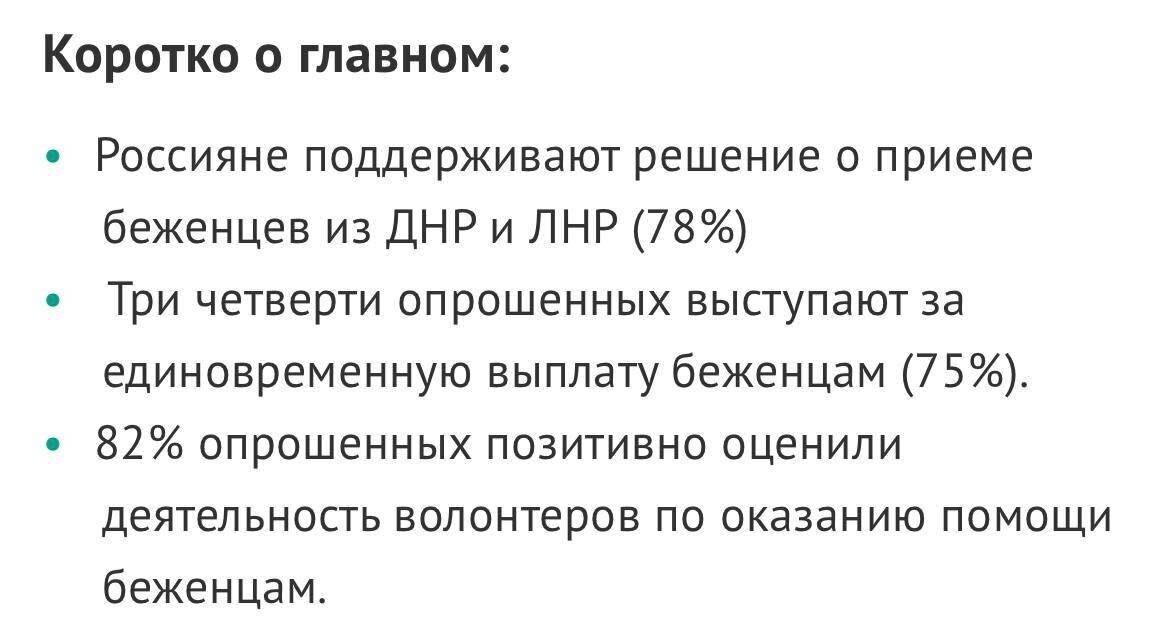 Около 80% россиян поддерживают решение о приёме эвакуированных из ДНР и ЛНР — опрос ВЦИОМ