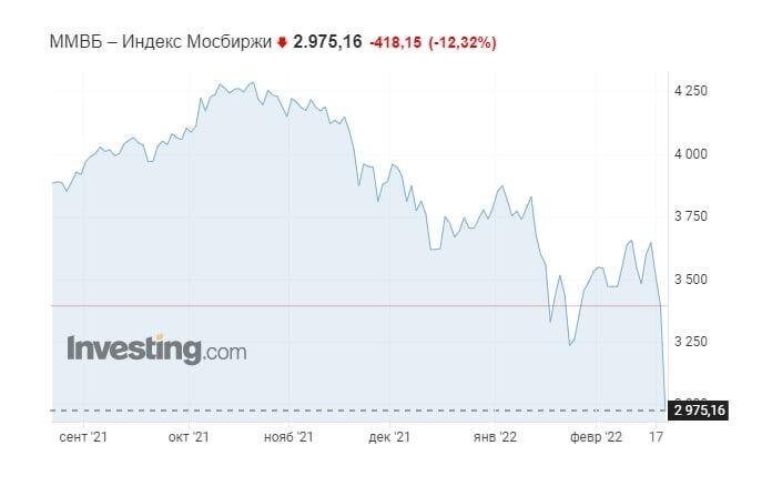 Индекс Мосбиржи упал ниже 3000 пунктов впервые с 10 ноября 2020 года