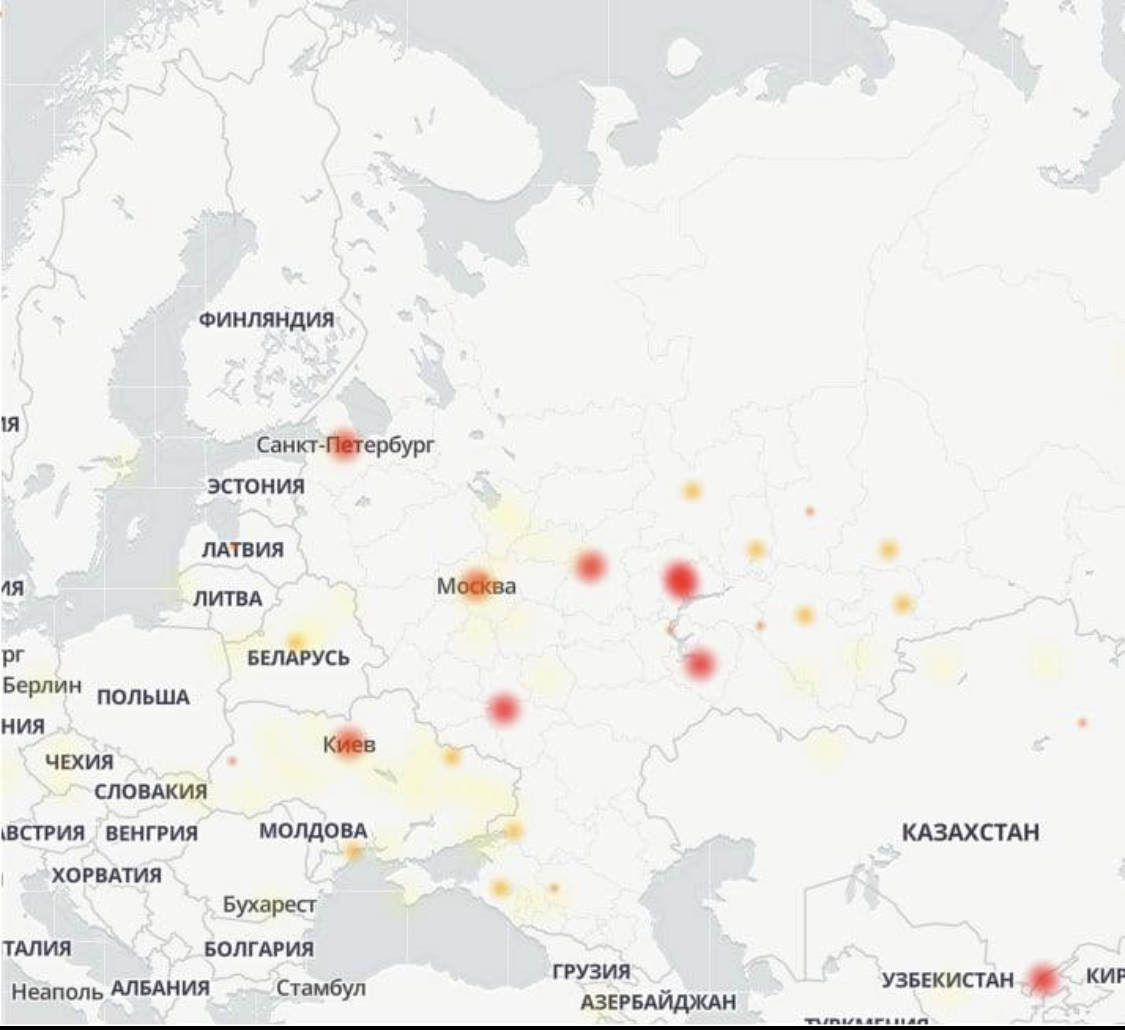 Крупные сбои телеграмма наблюдаются в Питере, Москве, и Киеве.