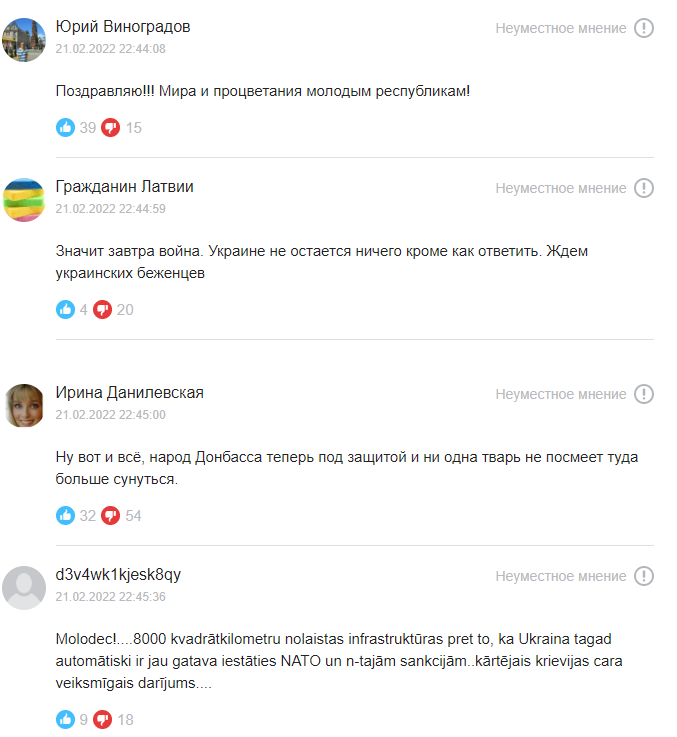 На латвийском портале Делфи Латвия просто констатировали факт. Интереснее читать комментарии: