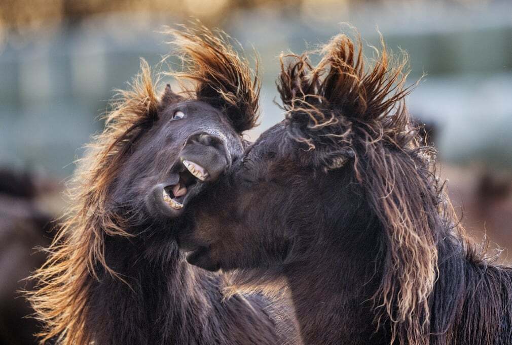 Верхайм, Германия Исландские жеребцы играют вместе на конном заводе