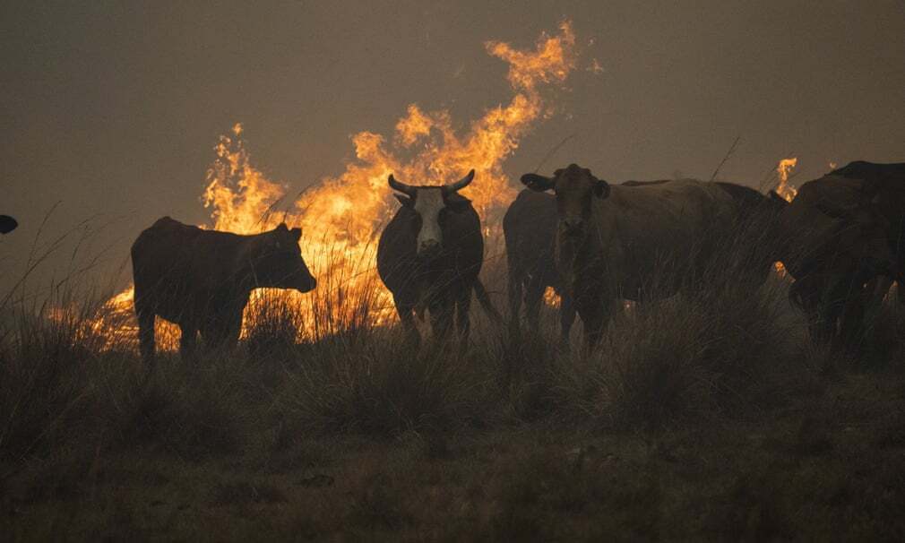 Санто-Томе, Аргентина Коровы собираются, чтобы покинуть этот район, поскольку пожары продолжают опустошать провинцию. На сегодняшний день сожжено более полумиллиона гектаров.