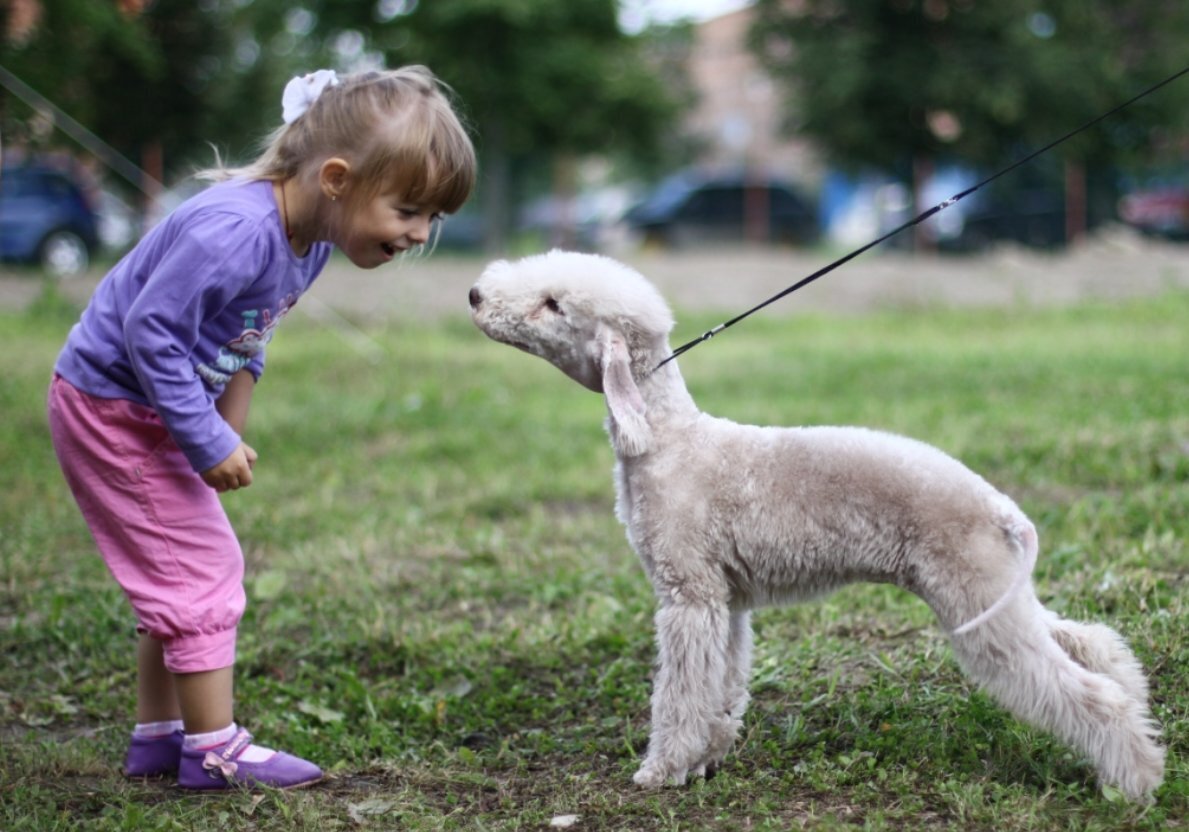 Бедлингтон умеет становиться хорошим питомцем для самых разных семей, выстраивая очень теплые отношения с людьми всех возрастов. Это волевая собака, которая всегда начеку. Любит детей, но их следует предупреждать, что собака может иногда устанавливать свои границы, и грубо играть с ней нельзя. Если ребенок будет вести себя слишком напористо, бедлингтон может укусить. Он не агрессивен, но может быть время от времени раздражительным, когда нарушается его личное пространство.
