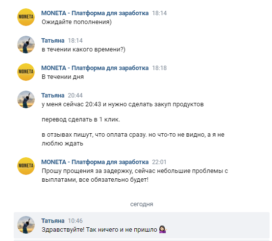 Не верьте никаким скринам о поступлении денег в комментариях. У них там время расходиться, на скрине одно, а отзыв раньше прихода денег!