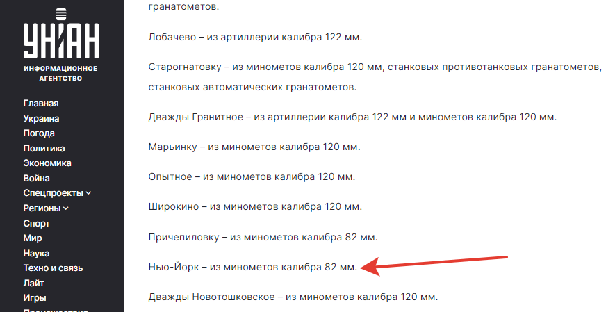 Как упоминается: обстрелы велись по многочисленным населенным пунктам, в числе которых один особо отмечен стрелкой (Да, есть такой в Донецкой области. Уже полгода)