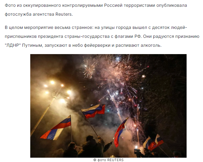 И попытки очернить, осмеять радость людей после подписания президентом РФ указов о независимости ранее непризнанных республик сквозят почти в каждой новости.