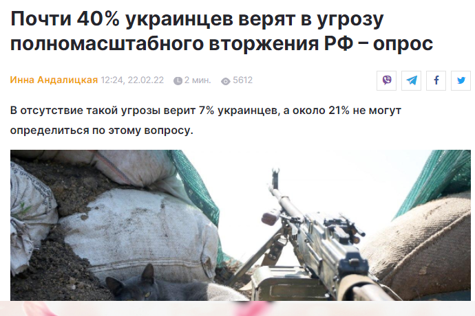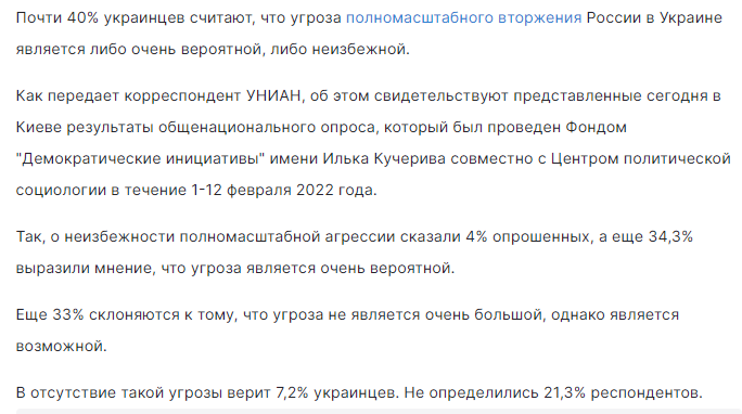 И даже итоги социологических опросов, проведенных в Украине в последние дни, представлены в качестве предположений о неминуемости полномасштабной войны.