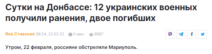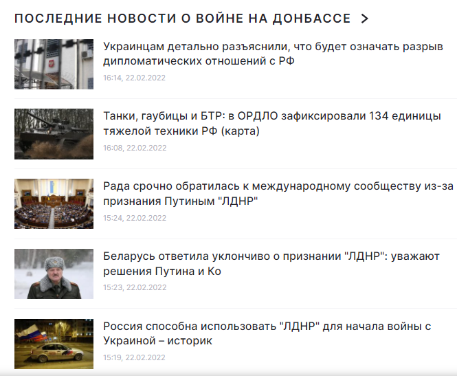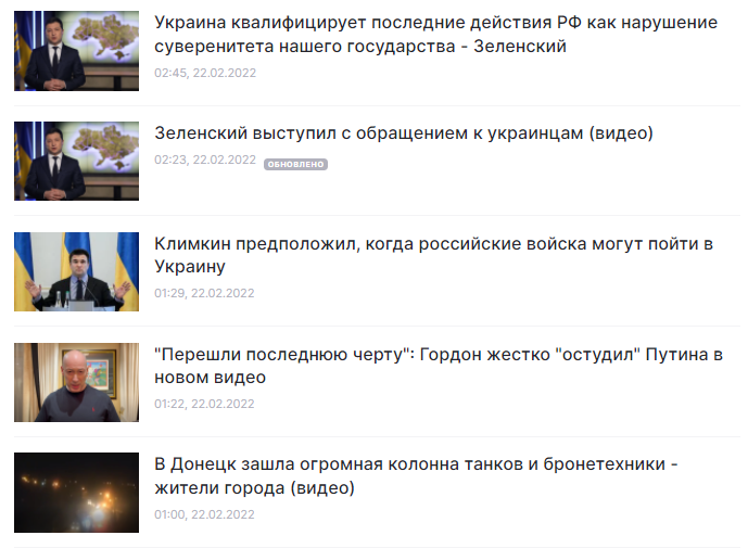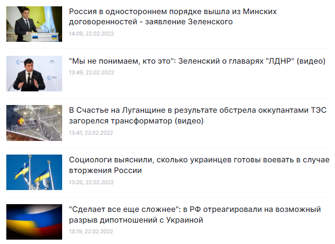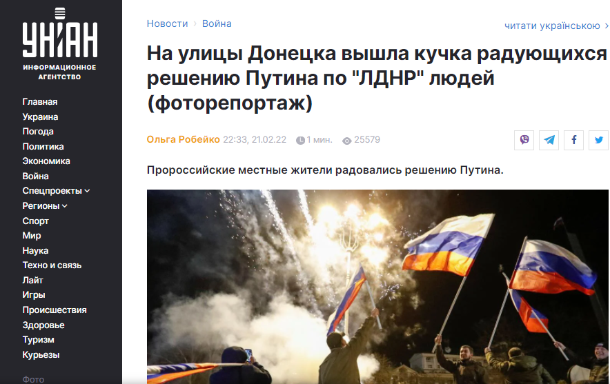 Донбасс – Украина – Россия: освещение украинскими СМИ событий, связанных с признанием Россией независимости ЛНР и ДНР на 22.02.2022