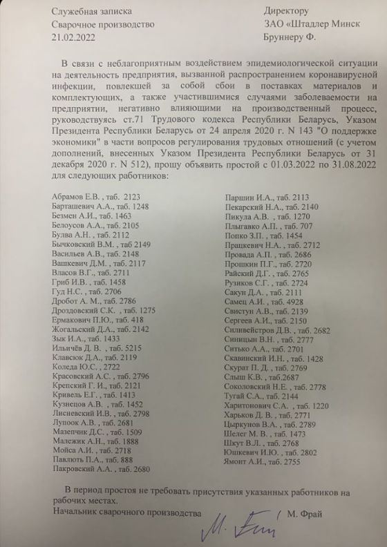 Как оказалось, собственно что задачей на белорусских предприятиях считается не тупое управление лукашистских прикорытников, а эпидемиологическая обстановка, вызванная распространением коронавирусной инфекции. Наказания, наверное, также ни при чём.