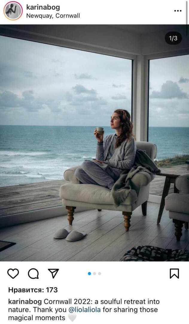 На личной странице в Instagram**** девушка поделилась фотографией с отдыха, сделанной в Ньюквее (город на северном побережье Корнуолла, юго-запад Англии).