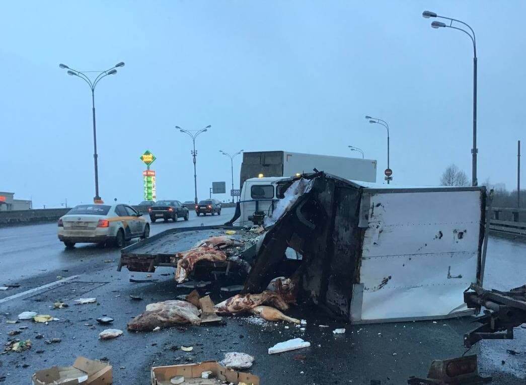 Говяжьи туши рассыпались на МКАДе.